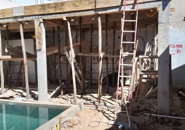 Construção e Instalação da laje e banheiro na área da churrasqueira.