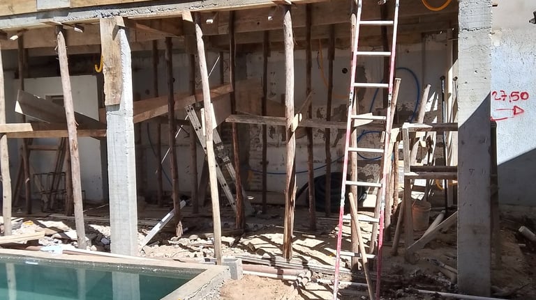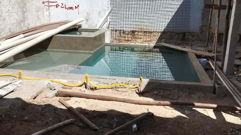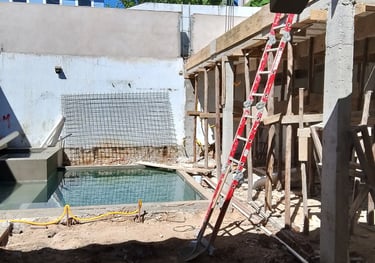 Preparação do ambiente e construção para área de churrasqueira da piscina.